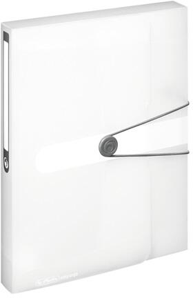 A4-es méretű iratok tárolására alkalmas füzetbox PP alapanyagból, feliratozható 4 cm-es gerincvastagsággal, az easy. orga to go termékcsalád tagja, fehér áttetsző színben.