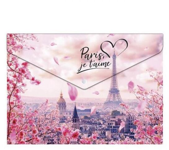 Nagyon szép Párizs - Eiffel torony mintájú, Paris je t'aime feliratú patentos irattartó tasak A5-ös iratok, dokumentumok tárolására. A patent segítségével könnyen záródik. Anyaga: PP polipropolén (műanyag), 180 mikron. Kapacitás: 120 lap. Színe: rózsaszín.