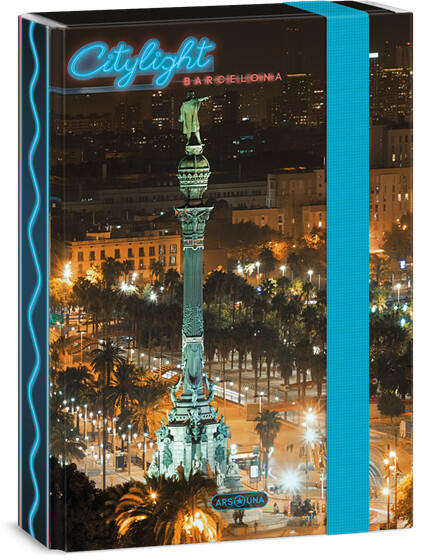 Ars Una City Light-Barcelona 24 (5441) A5 füzetbox A5 méretű füzetbox. Kemény, tartós kartonból, 4 cm-es gerinccel, fényes fóliával, 7 mm széles gumipánttal. Belseje egy színnel nyomott. Füzetek, iratok tárolására.