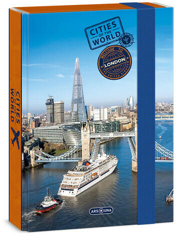 Ars Una A5 füzetbox Cities-London (5335) 23 50863358 A/5 méretű füzetbox londoni városképpel Kemény és tartós kartonból 4 cm-es gerincvastagsággal 7 mm-es gumipánttal zárható Füzetek, iratok tárolására tökéletes Méret: 160x220x35 mm