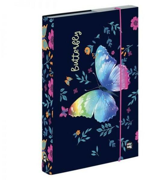 Szép pillangós mintájú A5-ös méretű füzetbox lányoknak, rajongóknak. Ebben tárolhatóak a füzetek, hogy ne legyenek szamárfülesek, ne sérüljenek. Mérete: 23x4x16,8 cm. Anyaga: karton. Szín: kék.