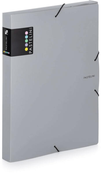Műanyag füzetbox A/4, PASTELINI, pasztell szürke. Méret: 246x326x30mm. Anyaga: polypropylen.