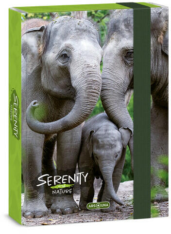 Ars Una A5 füzetbox Serenity-elephant (5333) 23 50863334 A/5 méretű füzetbox elefántos fotóval Kemény és tartós kartonból 4 cm-es gerincvastagsággal 7 mm-es gumipánttal zárható Füzetek, iratok tárolására tökéletes Méret: 160x220x35 mm