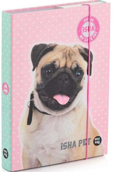 Isha kutyusos motívummal ellátott füzettartó box A5-és méretben. Elengedhetetlen kelléke minden iskolásnak a füzetek, papírok és más iskolai segédeszköz tárolására. Ellenálló anyag - lamino, védi a boxot a sérüléstől. Gumis zárás. A hát szélessége 3 cm.