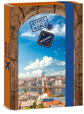 Cities-Budapest füzetbox A/5 Hivatalos magyarországi forgalmazótól. Leírás: Magyarország fővárosának csodálatos látképe tárul elénk a Cities-Budapest füzetbox által. Budapest jellegzetes épülete a Parlament, a Duna-part és a színes lombú fákkal övezett régi stílusban épült házak díszítik a kemény kartonból készült, gumis füzetbox-ot, melyben A/5-ös méretű lap
