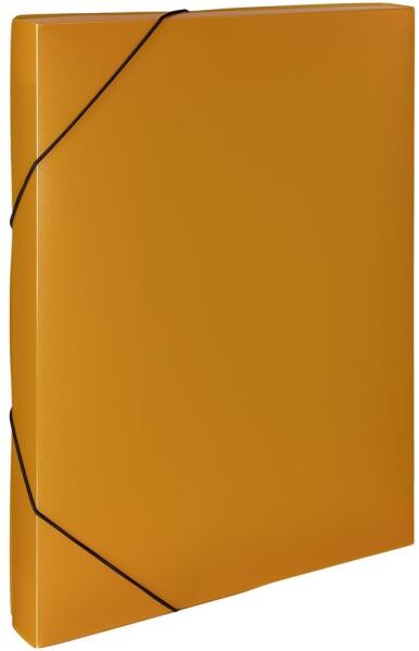 Erős, könnyű füzetbox, mely nagyszámú A4-s dokumentum tárolására és hordására alkalmas. Belső fülei és a mappa színével megegyező színű, kerek, erős gumiszalag megakadályozzák az iratok kiesését. A kiváló minőségű és tartós kivitelezés megvédi a tartalmat a szennyeződéstől vagy a sérüléstől. Formátuma: A/4. Anyaga: 100% újrahasznosított PP, 230 qm. Mére