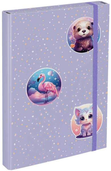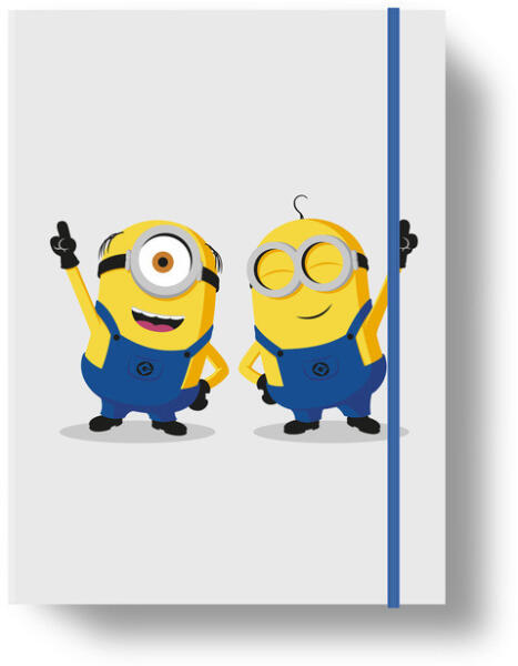A/5 méretű füzetbox. Kemény, tartós kartonból, 4 cm-es gerinccel, fényes fóliával, 7 mm széles gumipánttal. Belseje egy színnel nyomott. Füzetek, iratok tárolására, Minions motívumokkal.