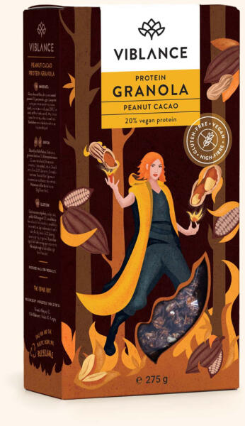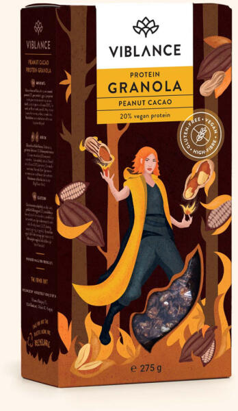 Viblance granola proteines mogyorós kakaós 275g Ropogós granola 20% növényi proteinnel. Ez a granola a földimogyoró, a kakaó és a superfoodok (borsófehérje, lenmag, napraforgómag) szerelmi háromszögéből született, amit a datolyapüré tesz még karakteresebbé. Tökéletes választás edzés előtt vagy után, de a reggeliként is garantáltan feltölt. Főbb változások: keveseb