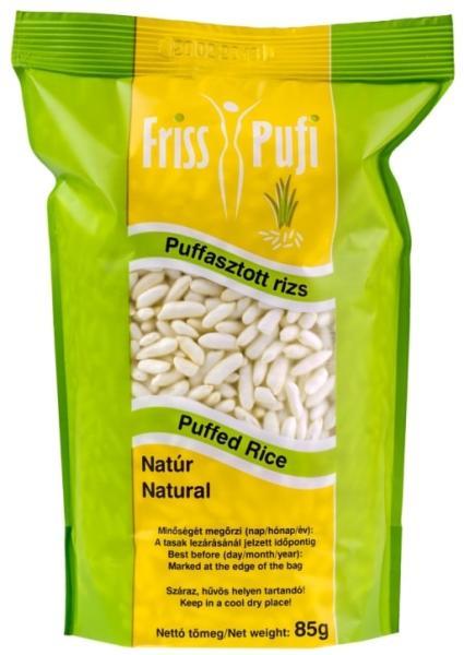 Natúr puffasztott rizs. Tartósítószert nem tartalmaz! Tedd változatosabbá, egészségesebbé a reggelit puffasztott gabonákkal! Ízletes, ropogós, könnyen emészthető termékek. Magyarországon termelt rizsből! Nassolnál, de nem mindegy mit? Vigyáznál családod egészségére? FrissPufi A FrissPufi puffasztott gabonák nem csak egészségesek, de finomak is! Fogyasztható önmagában