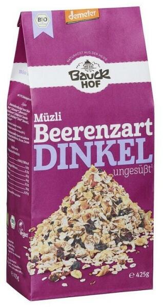 Gyümölcsös müzli. Teljes kiőrlésű tönkölypehely, mazsola, datolya, szeder, áfonyadarabkák, eperdarabkák egészséges keveréke. FONTOS! A termék nyomokban tartalmazhat gluténtartalmú gabonaféléket, dióféléket, szezámot és csillagfürtöt. Nyomokban mogyorót és szóját tartalmazhat. Összetevők ellenőrzött biogazdaságból: teljes kiőrlésű tönkölypehely, bogyók (ma