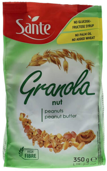 Sante granola mogyoróval és mogyoróvajjal – pálmaolaj, glükóz-fruktóz szirup és búza nélkül, rostdús reggeli vagy snack. Természetes energialöket.