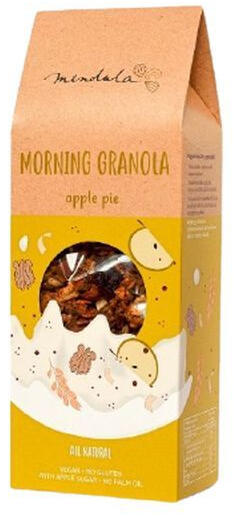 Almás-fahéjas granola. Fahéjas-diós ropogós granola, enyhén pirított kókuszpehellyel, aszalt szatmári almakockákkal és finom mazsolaszemekkel. Ha a nagyi almás pitéjének ízvilágát keresed, ezt a granolát imádni fogod. 300 g-os granola; Mendula termék az egészséges élelmiszerek kedvelőinek.