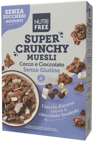 Gluténmentes és hozzáadott cukor nélkül csokival és kókusszal. Kíváló választás reggelire, joghurtba, tejjel vagy sütemények díszítésére.