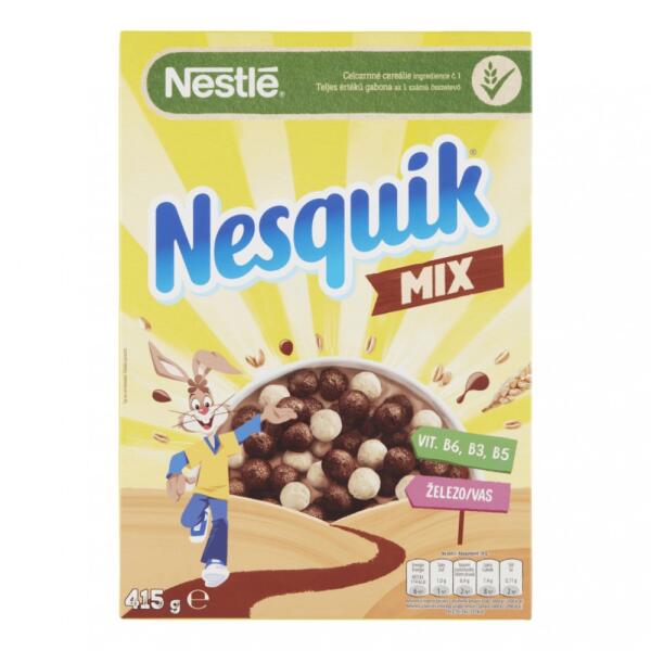 A Nesquik gabonafalatkák nem csupán a gyerekek reggelijét színesítik, a szülőket is elégedetté teszik, hiszen nemcsak finomak, hanem vitaminokat, rostokat és ásványi anyagokat tartalmaznak, többek között kalciumot és vasat. Nesquik Mix kakaós és vanília ízű, ropogós gabonapehely (325 g) A Nesquik Mix barna és fehér golyócskái izgalmat csempésznek a gyerekek reggelijébe