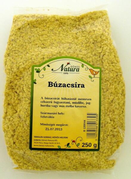 A csíra a búza "embriója", a búzaszem része, amelyből az új növény fejlődik. A lisztté őrlés során különítik el. Bár a magnak csak kis részét alkotja, nagy a tápértéke. Sok különleges fehérjét, olajat és abban oldott vitaminokat tartalmaz. Magában fogyasztják, vagy liszttel együtt levesek, pörköltek sűrítésére használják. Kiszerelés: 250 g Energia: 1 evőkan
