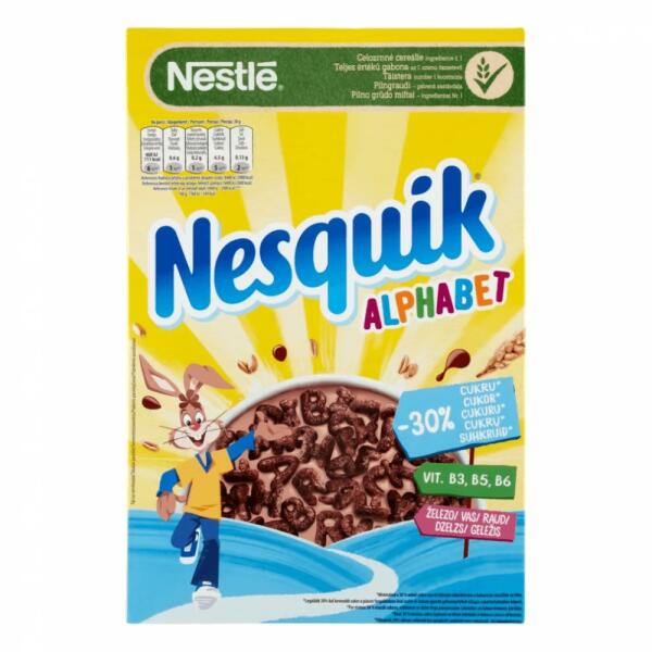 A Nesquik gabonafalatkák nem csupán a gyerekek reggelijét színesítik, a szülőket is elégedetté teszik, hiszen nemcsak finomak, hanem vitaminokat, rostokat és ásványi anyagokat tartalmaznak, többek között kalciumot és vasat. Nesquik Alphabet gabonapehely (325 g) Betű formájú, kakaós ízű, ropogós gabonapehely vitaminokkal és ásványi anyagokkal. Tudtad? A Nesquik Alphabet ga