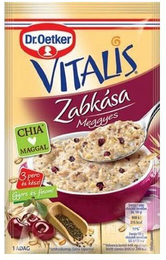 A meggyes Vitalis zabkásával lendületesen indul a nap!55 g-os zabkása; Dr. Oetker termék reggeli kása készítéséhez.