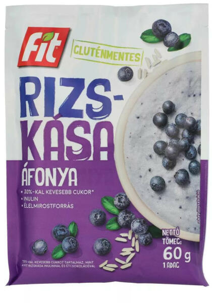 Percek alatt, csupán forró víz hozzáadásával elkészíthető, élelmi rostokban gazdag, gluténmentes rizskása áfonyával. Tartósítószer- és színezékmentes. 30%-kal kevesebb cukrot tartalmaz. FIT RIZSKÁSA ÁFONYA GLUTÉNMENTES 60G Percek alatt, csupán forró víz hozzáadásával elkészíthető, élelmi rostokban gazdag, gluténmentes rizskása áfonyával. Tartósítószer- és s