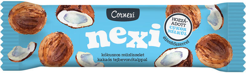 Téglatest alakú, kellemesen édes, kókuszos müzliszelet kókuszreszelék szórással a tetején. Átlagos tápérték: 420 kcal Energia: 1751 kJ Zsír: 22 g amelyből telitett zsírsavak: 16 g Szénhidrát: 61 g amelyből cukrok: 2,7 g amelyből poliolok: 33 g Rost: 4,0 g Fehérje: 5,8 g Só: 0,12 g. Jellemzők laktózmentes Nem tejmentes Nem gluténmentes Nem tartósítószer-mentes Igen toj
