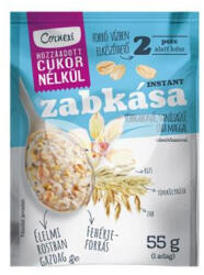 A Zabkása, 55 g, CORNEXI, többgabonás chiával és quinoával, hozzáadott cukor nélkül (KHE342) Összetevők: zabpehely 50%, édesítőszer: maltitok 14%; sovány tejpor, kukoricakeményítő, kölespehely 4,5%, árpapehely 4%, teljes kiőrlésű tönkölybúza dara 3%, chia mag 3%, aztékzsályamag (Salvia hispanica), quinoa pehely 2%, rizspehely 2%, aroma, étkezési só Nyomokban diófél