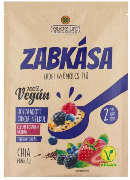 Összetevők: zabpehely 50%, édesítőszer: maltitok 14%; sovány tejpor, kukoricakeményítő, kölespehely 4,5%, árpapehely 4%, teljes kiőrlésű tönkölybúza dara 3%, chia mag 3%, aztékzsályamag (Salvia hispanica), quinoa pehely 2%, rizspehely 2%, aroma, étkezési só Nyomokban dióféléket, földimogyorót, szóját és szezámmagot tartalmazhat!