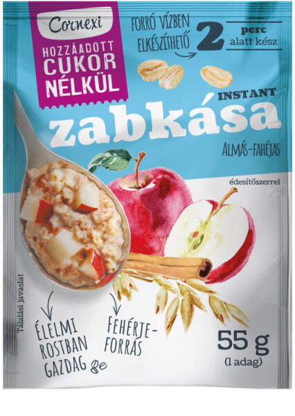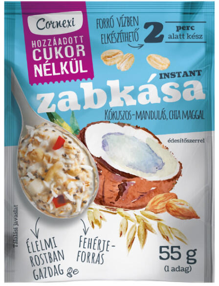 Cornexi zabkása kókusszal, mandulával, chia maggal hcn 55 g A CORNEXI zabkásák kiváló rostforrások kicsiknek és nagyoknak A zabkásával elegendő lassan felszívódó szénhidrátot fogyasztunk, a kásák telítik a gyomrunkat megakadályozva, hogy feleslegesen sok kalóriát tartalmazó tápanyagot vigyünk be. Mivel a zab számos variációs lehetőséggel rendelkező alapanyag, amely