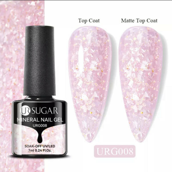 Ur Sugar Minerál/ásvány hatású gél lakk 7ml Áttetsző alapban ásványkő hatású díszítő elemek vannak így bármelyik színnel kombinálhatjuk. Kötési ideje Led-ben 1perc/ Uv-ban 2-3 perc.
