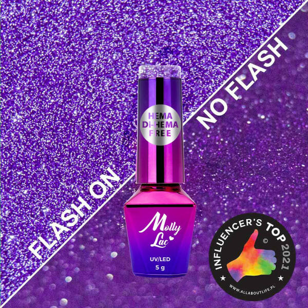 A Molly Lac Flashing Lights géllakk 603 (HEMA Free) egy gyönyörű mélylila, melyben annyi misztikum van, mint magával ragadó elegáns báj. . A Flashing Lights, azaz a villogó fények elnevezésű géllakkjainak kollekciója két arcot rejt. Az hogy melyik változat lesz látható, az csak a fénytől függ és annak intenzitásátó. A fénnyel kezdődik minden... És a fénnyel végződik