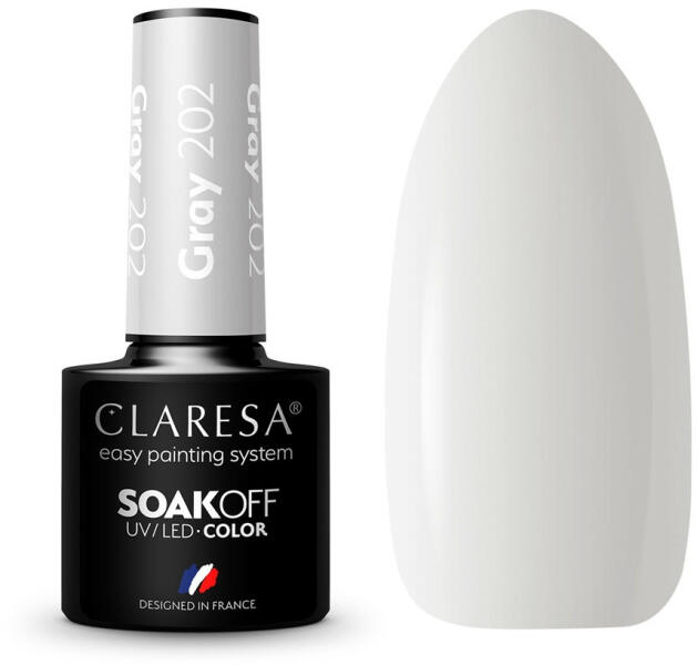 Claresa Gél lakk GRAY 202# A gél lakkok olyan megoldást jelentenek, amelyet egyre több nő választ. Népszerűségüket elsősorban a figyelemre méltó tartósságuknak köszönhetik. A megfelelően elkészített gél lakk manikűr, lehetővé teszi számodra, hogy akár 3 hétig is élvezhesd a kezed gyönyörű megjelenését! A Claresa Gél lakk számtalan csodálatos színben és elegán