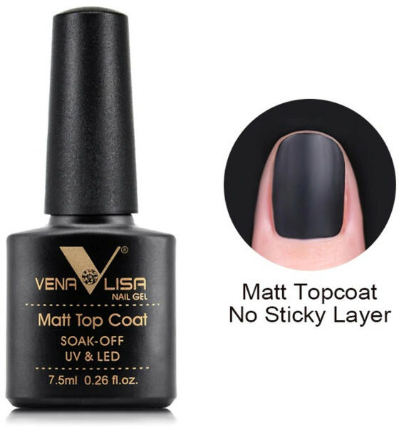 VENALISA MATT TOP COAT A Venalisa Matt Top Coat a legfrissebb trendnek megfelelő egyenletes, csíkmentes matt hatású fedőlakk, amely hosszantartó matt felszínt ad a körmöknek, visszafényesedés nélkül! TERMÉKELŐNYÖK: Hosszantartó, matt hatás visszafényesedés nélkül! Egységes matt felületet biztosít! Nem csíkosodik! Tökéletes lezárása a manikűrnek, mert védi a színt a