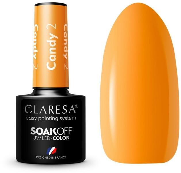 Claresa Gél lakk CANDY 02# A forró tengerpart és a narancssárga nap látványa, amely felmelegíti a homokot és az érzékeid ... álmodhatsz. A Candy 02# gél lakkal forró, napfényes ünnepi körmöket készítsz! Ez a szín kiválóan kombinálható más, ugyanolyan kifejező színekkel, például tüzes vörössel. Egy ilyen kombináció szó szerint leforrázza az ünnepi napot!Próbál