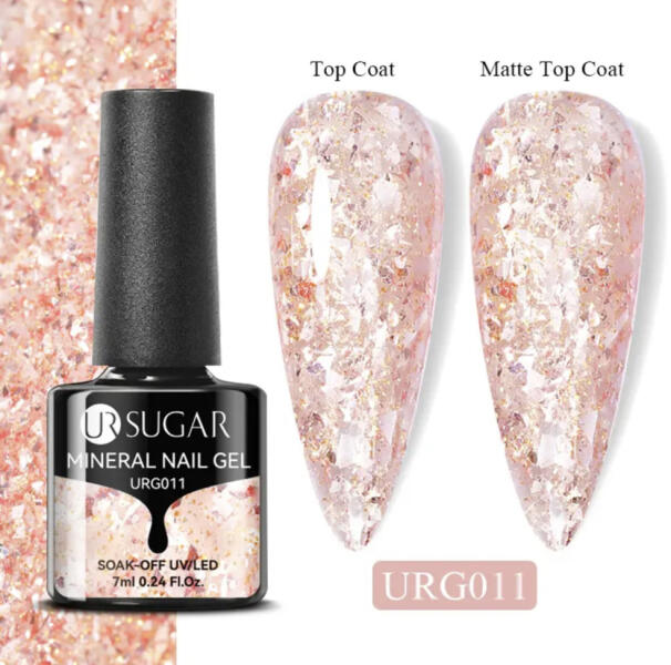 Ur Sugar Minerál/ásvány hatású gél lakk 7ml Áttetsző alapban ásványkő hatású díszítő elemek vannak így bármelyik színnel kombinálhatjuk. Kötési ideje Led-ben 1perc/ Uv-ban 2-3 perc.
