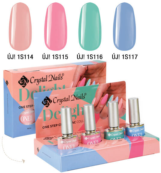 Friss és vidám színekben pompázik a Delight One Step CrystaLac készlet, amely két nőies és két vagány, bevállalós árnyalatot tartalmaz. Display-jé alakítható dobozban, így vendéged is könnyebben tud majd választani. Csak vedd ki az üvegeket és a display koronát a dobozból, majd fektesd el azt. Legyen az asztalod dísze a legújabb géllakk válogatásunk!A készlet megvás