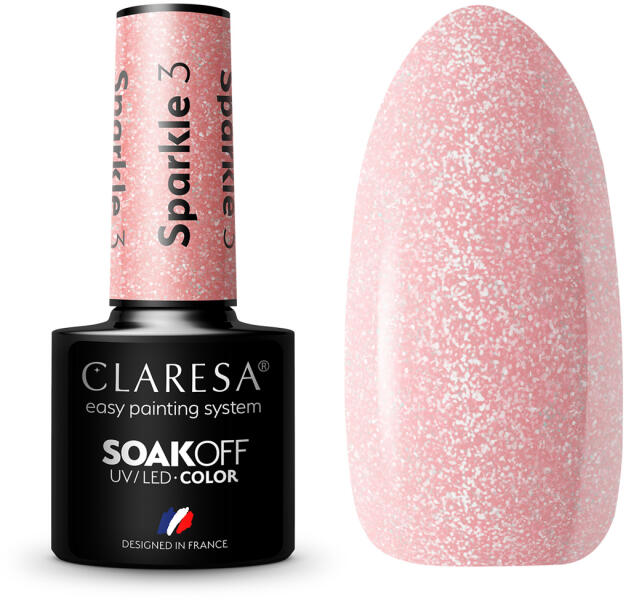 CLARESA Hybridní lak na nehty SPARKLE 3Hybridní laky na nehty jsou řešením, které volí stále více žen. Za svou oblibu vděčí především své pozoruhodné odolnosti. Správně provedená hybridní manikúra vám umožní užívat si krásný vzhled vašich rukou až 3 týdny!Hybridní laky Claresa jsou až 300 barev uzavřených v elegantní skleněné lahvičce, jejíž barva je dob