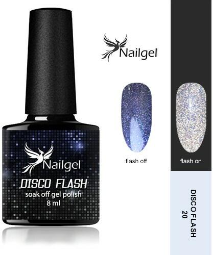 A Nailgel Disco Flash gél lakk kollekció tagjai önmagukban is lenyűgözően csillámos effekt lakkok. A glitterek intenzív hatásának köszönhetően ezek a gél lakkok a fény hatására szinte felragyognak vendéged körmein. A Disco Flash gél lakk igazán partihangulatba hozza vendéged. A Disco Flash gél lakk 3 lépéses és közepesen sűrű gél lakk, egy rétegben fed, amely nagyfok