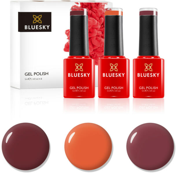 Autumn Leaves Mini Set Három mini géllakk (5 ml) egy csomagban, díszes dobozban. Kiváló otthoni használatra, illetve a BLUESKY márka első kipróbálására. AW1807- Blast from the past BP27 - Cinnamon roll BP01 - Pumkin Spice A géllakk két rétegben tökéletes fedést biztosít, lapos kialakítású ecset segíti a könnyű felvitelt. A Bluesky saját alapozó és fedő lakkjait ajánlj
