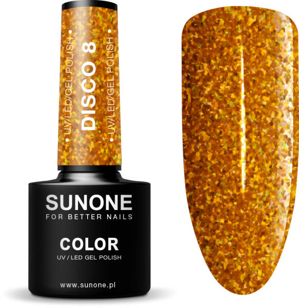 Fedezd fel a Sunone Gél lakk Disco 8 varázslatos világát, amely a csillogó arany színével minden műkörmös álma! Ez a lenyűgöző gél lakk nemcsak a vendégeid körmét varázsolja el, hanem a te munkádat is új szintre emeli és garantáltan meghódítja majd a szívedet. Most a Sunone Gél lakknak köszönhetően élvezheted a tartós körmöket és a gyönyörű körömszínt. Leny