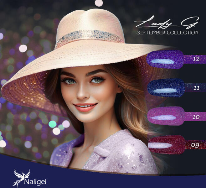 Fedezd fel a Lady G gél lakkok varázslatos világát! 5 hónaon kesztül havi négy új szín, krémes és pigmentált formula, multicolor csillámokkal a tökéletes manikűrért. Légy trendi minden hónapban! Az Lady G gél lakk egy közepesen pigmentált, 3 lépéses és közepesen sűrű gél lakk, két rétegben fed amely nagyfokú kopásállósággal rendelkezik. Használatával a csillá