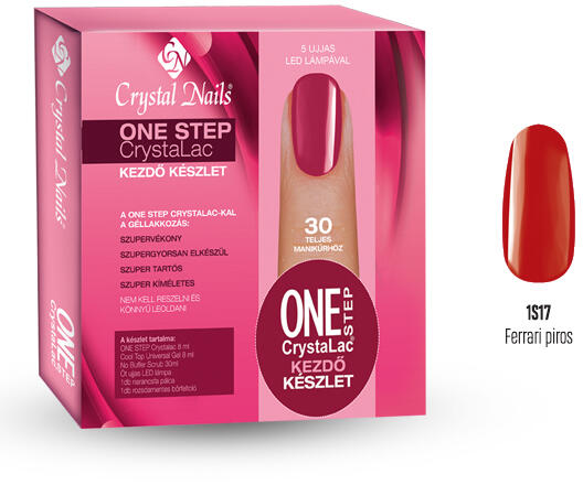 Ferrari piros A kezdőkészletek legújabb változata, No Buffer Scrubbal! - Így minden eddiginél kíméletesebb a ONE STEP CrystaLac-ozás! A ONE STEP CrystaLac-ozáshoz szükséges minden anyagot és eszközt tartalmaz. A készlet tartalma: ONE STEP CrystaLac 1S17 Ferrari piros 8ml (kb. 30 komplett lakkozáshoz) Cool Top Gel Universal 8ml No Buffer Scrub 30ml ötujjas LED lámpa narancsfa pál