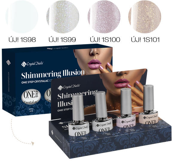 A készlet tartalma:1S98 - Vakító fehér 1S99 - Csillámló fagyöngy 1S100 - Csillámló habcsók 1S101 - Csillámló barack4x4ml