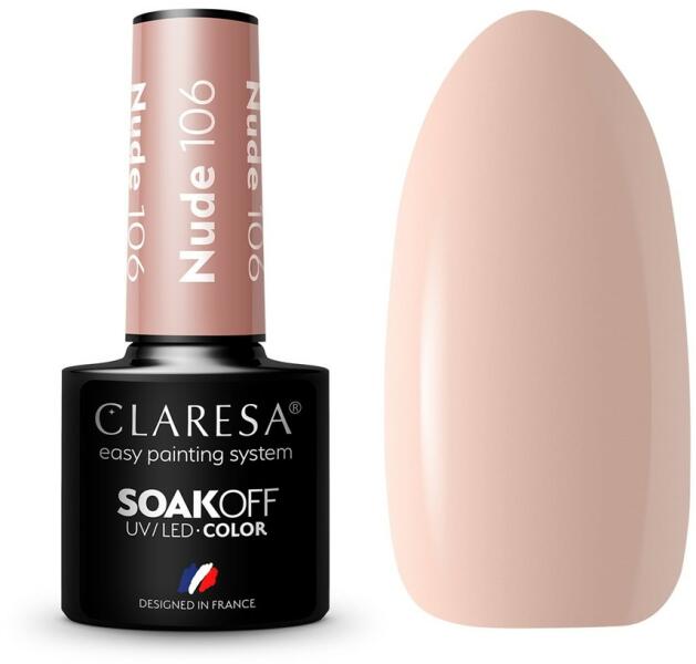 Claresa Gél lakk NUDE 106# A gél lakkok olyan megoldást jelentenek, amelyet egyre több nő választ. Népszerűségüket elsősorban a figyelemre méltó tartósságuknak köszönhetik. A megfelelően elkészített gél lakk manikűr, lehetővé teszi számodra, hogy akár 3 hétig is élvezhesd a kezed gyönyörű megjelenését! A Claresa Gél lakk számtalan csodálatos színben és elegán