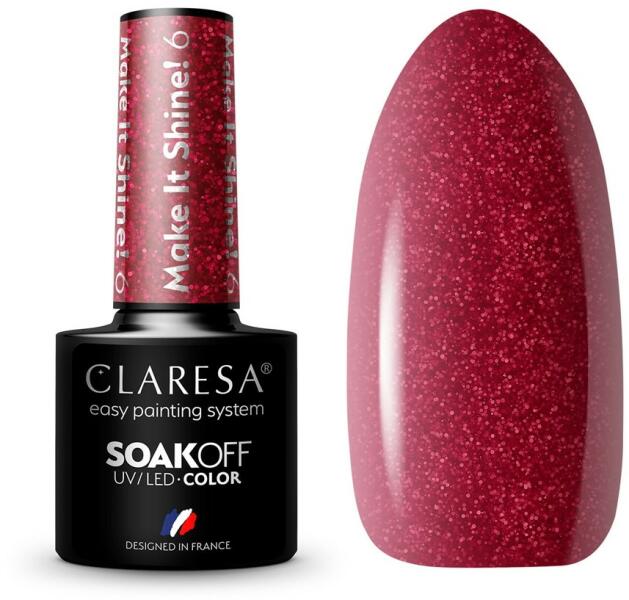 Claresa Gél lakk MAKE IT SHINE 06# Rózsaszín szemüveggel nézni a világot?Ezúttal egy intenzív, csillogó fukszia szín, ami karácsonyra megédesít, és mindent szépnek, egyszerűnek és édesnek varázsol. Az ünnepi köröm mintáknak általában egy közös nevezője van, a csillogó részecskék. Ha csillogó dekorációt szeretnél varázsolni, csillámporok, zselék vagy matricák