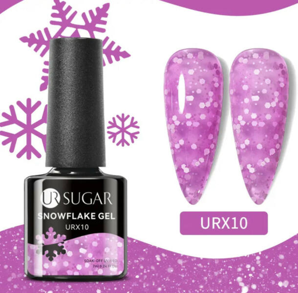 UR sugar Snowflake Gél lakk 7ml Rendkívül jól fed maximum 2 rétegben . Kötési idő Ledben 1 perc / Uv-ban 2-3 perc. Alap és fedő lakk szükséges hozzá .