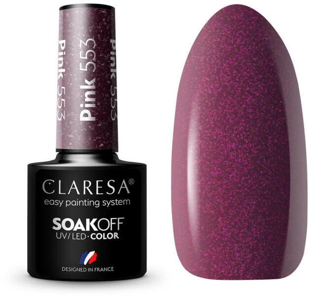 Claresa Gél lakk PINK 553# Olyan színű gél lakkot keresel, amely kiemeli kezed finomságát?Most találtad meg! Csodálatos, ciklámen színű, csillogó részecskékkel kiegészítve. Próbáld ki, milyen jól néz ki. Az intenzív, sötét szín csodálatosan kiemeli kezeid nőiességét, ujjaidat pedig optikailag karcsúsítja. Egy ilyen lakkozással semmi több nem kell az egyedi körömfo