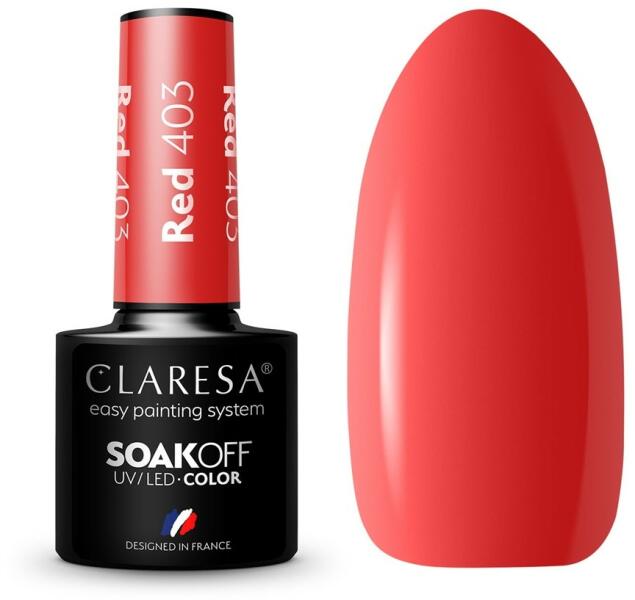 Claresa Gél lakk RED 403# A gél lakkok olyan megoldást jelentenek, amelyet egyre több nő választ. Népszerűségüket elsősorban a figyelemre méltó tartósságuknak köszönhetik. A megfelelően elkészített gél lakk manikűr, lehetővé teszi számodra, hogy akár 3 hétig is élvezhesd a kezed gyönyörű megjelenését! A Claresa Gél lakk számtalan csodálatos színben és elegáns