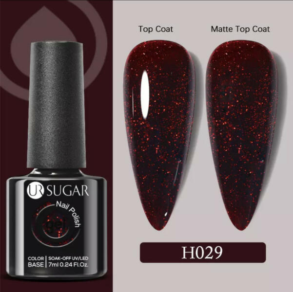 UR Sugar Gél lakk. Rendkívűl jól pigmentált. Akár már 2 rétegben is tökéletesen fed. Alap és fedőlak szükséges hozzá. Kötési ideje led-ben 1 perc , uv-ban 2-3 perc. Tartósága 3-4 hèt .