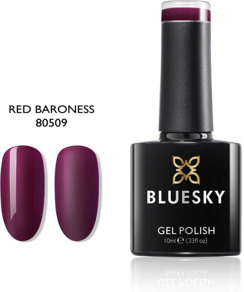 A Red Baroness csodás, közepes bordó shimmeres géllakk, egészen apró, bordós-lilásan csillogó szemcsékkel. Bordó színe enyhén fuksziába hajlik, így fiatalos és modern marad amellett, hogy nagyon elegáns. A géllakk két rétegben tökéletes fedést biztosít, lapos kialakítású ecset segíti a könnyű felvitelt. UV lámpában 2, míg led lámpában 1 perc kötési időt igény