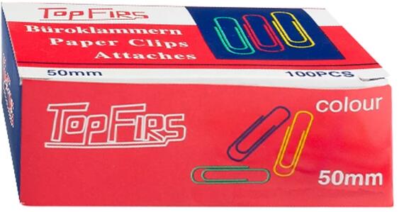 Színes műanyag bevonatú gemkapocs. Méret: 50 mm. 10 doboz/gyűjtő kiszerelésben.