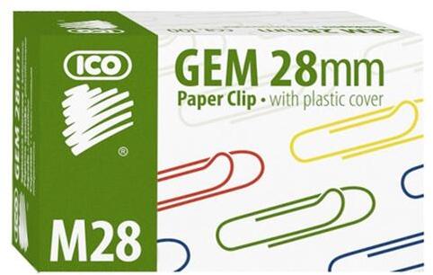 28 mm-es, kerekített, műanyag bevonattal ellátott, színes gémkapocs. 10 doboz/gyűjtő kiszerelésben.