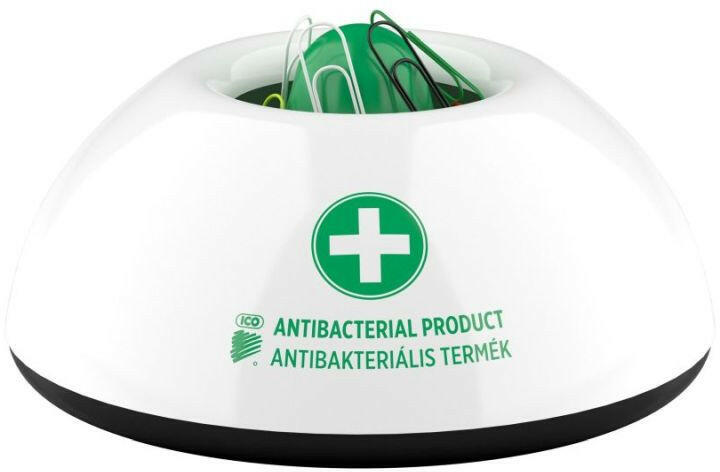 Jó minőségű fűzőkapocs, amely tartósan összefogja a lapokat. Antibakteriális gemkapocstartó. A műanyag alkatrészek antibakteriális védelmet adó Biomaster ezüst-ionokat tartalmaznak (biocid hatóanyag: ezüst-foszfát üveg). Az ICO Antibakteriális termékei bizonyítottan baktériumölő tulajdonsággal rendelkeznek, a felszínen megtelepedett kórokozók 24 óra leforgása alatt,